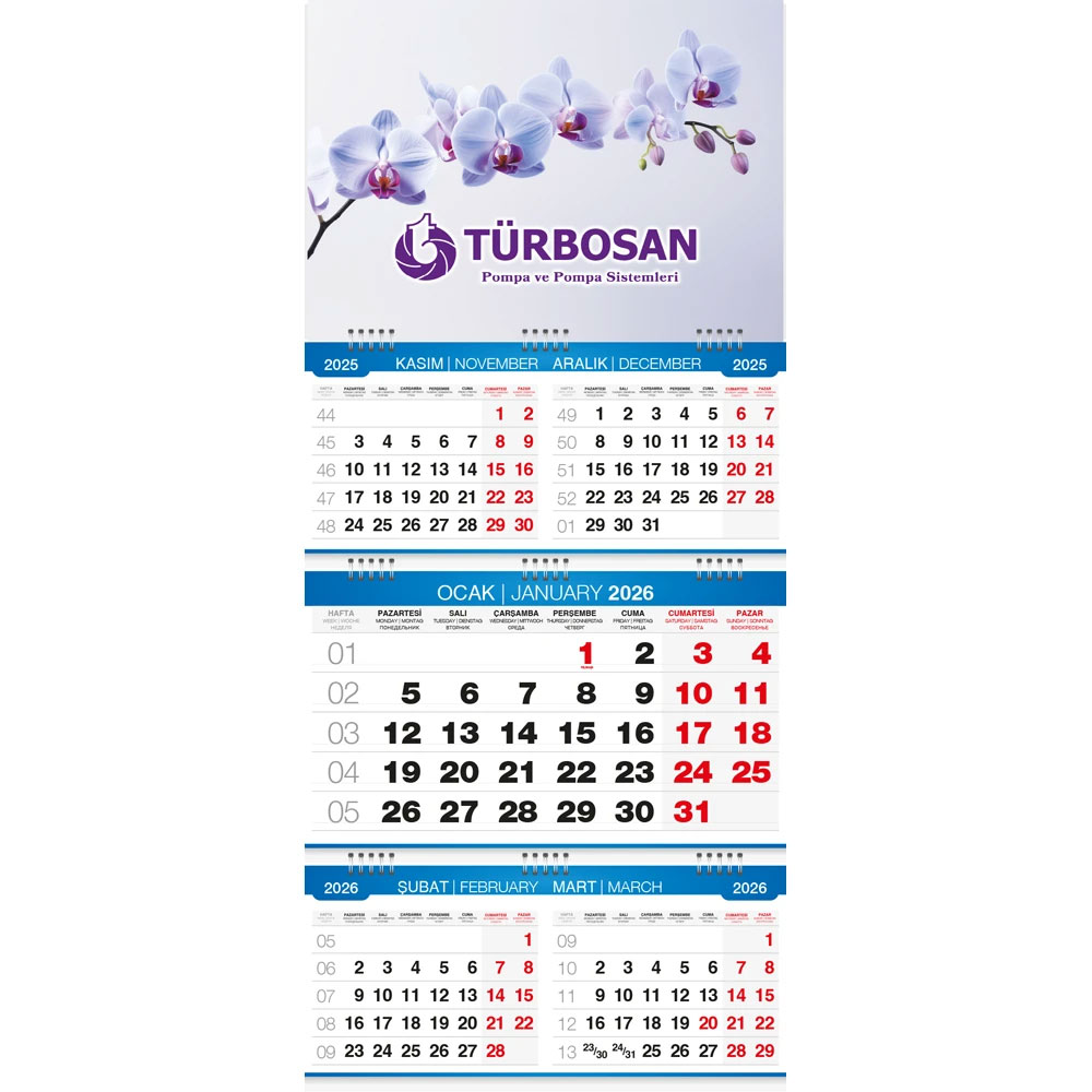 • Takvim Ebat: 33 x 73 cm